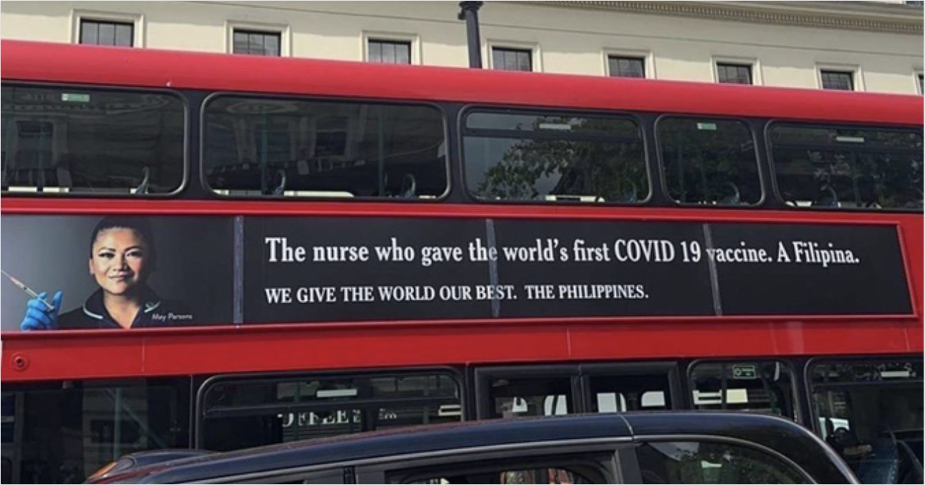 The senator was referring to the series of ads unveiled on the side of London buses, featuring Filipina-British nurse May Parsons.